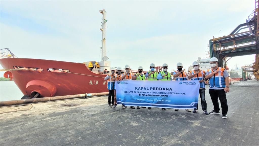 Medan, 3 February 2022 - PT Pelindo Multi Terminal as a subholding of PT Pelabuhan Indonesia (Persero) continues to expand its service range by officially starting port operations at Belawan Port, Medan and Tanjung Intan Port, Cilacap, starting Tuesday, February 1, 2022. This is marked by the welcoming of AU Virgo, the inaugural ship SPMT port service users at the Belawan Port Multipurpose Terminal, (2/2).